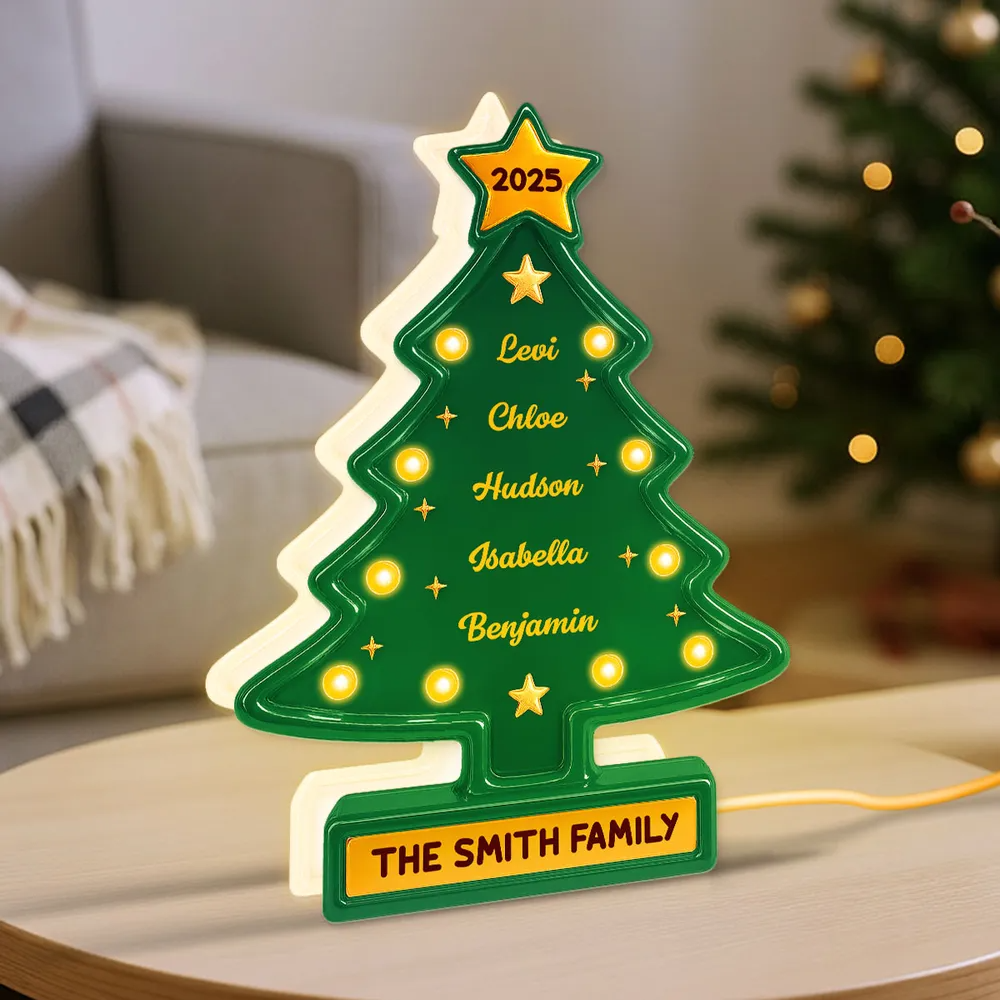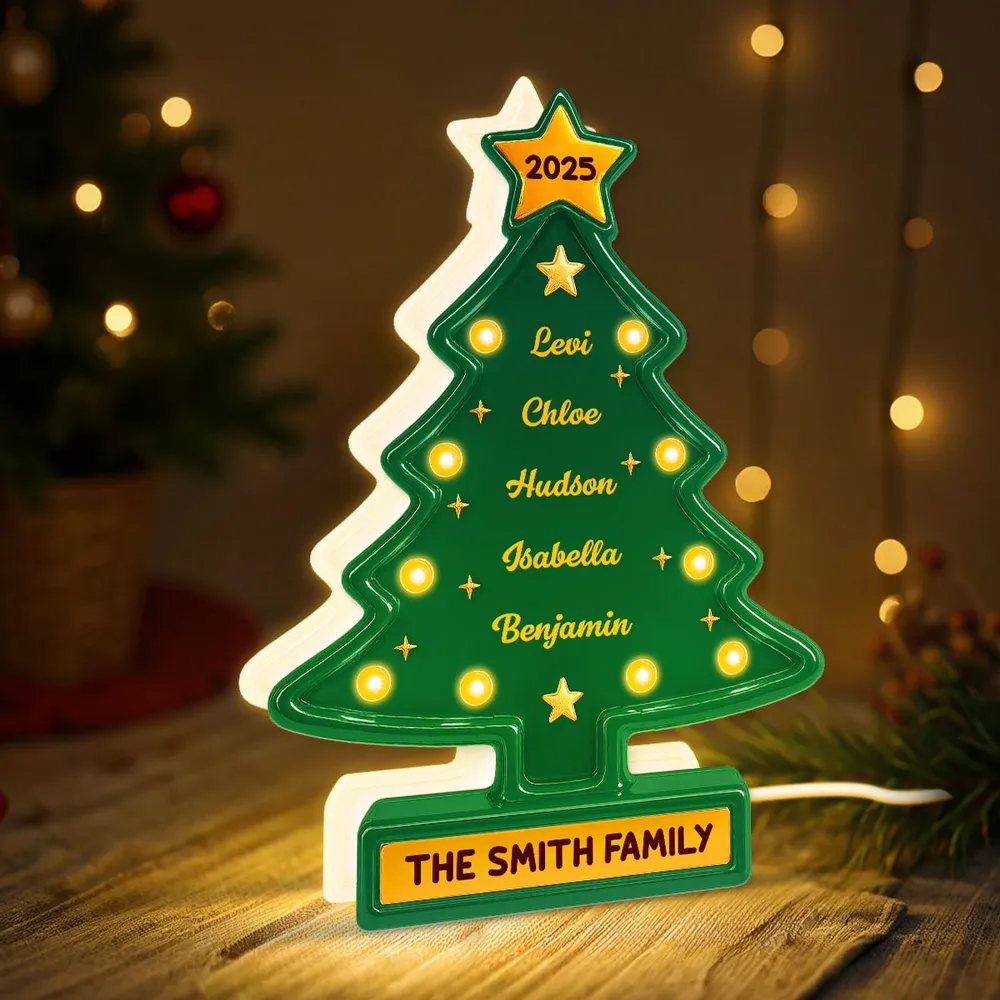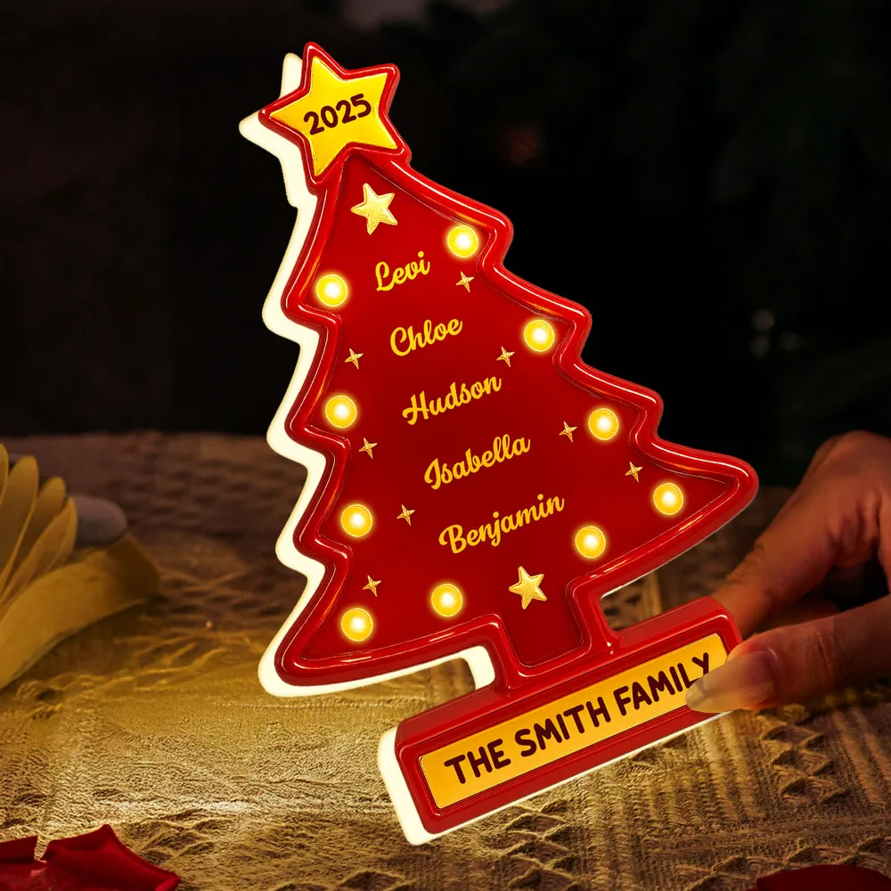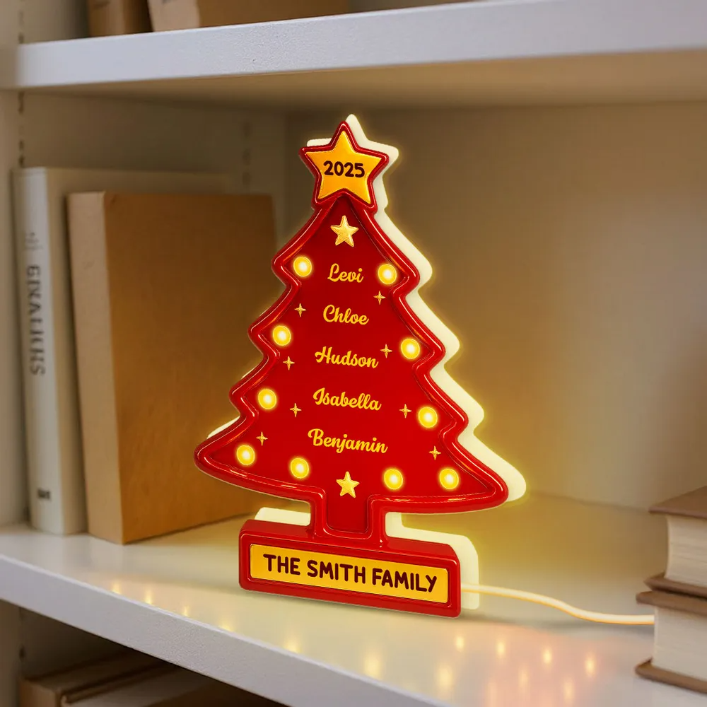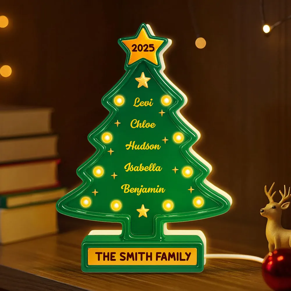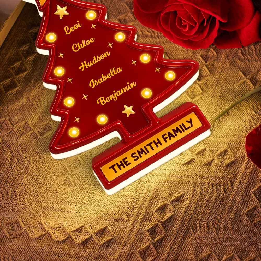 3D Effect Christmas Tree Marquee Texture Family Members Names Personalized LED Light Box