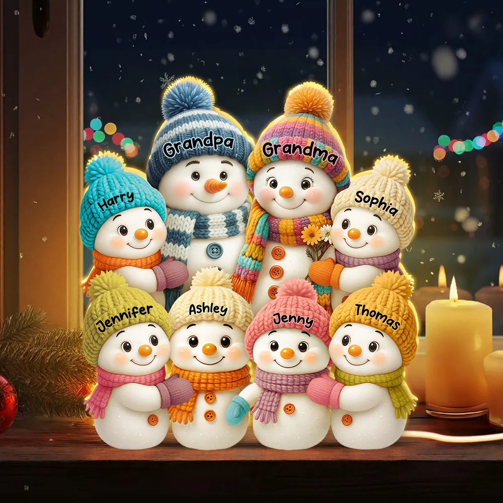 3D Effect Snowman Grandma Grandpa and Grandkids Personalized Light Box - Christmas Gift for Family, Grandma, Grandpa