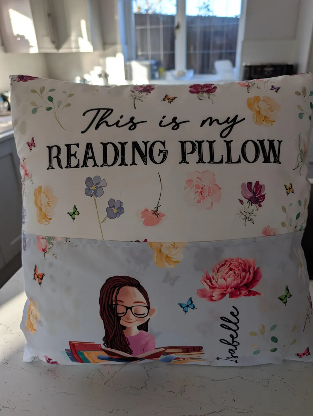 MESSAGE: This is my reading pillow.