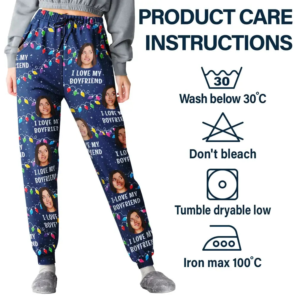 Surprise your loved one with the Custom Photo I Love My Wife - Personalized Pajama Pants, the perfect way to express your affection. Ideal for couples, this thoughtful gift is great for husbands, wives, boyfriends, and girlfriends on Valentine's Day, Mother's Day, Father's Day, Thanksgiving, Christmas, birthdays, and anniversaries.