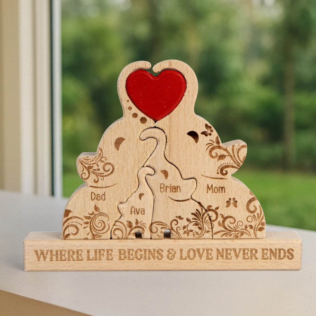 Elephant Family Custom Names - Personalized Wooden Elephant Family Puzzle