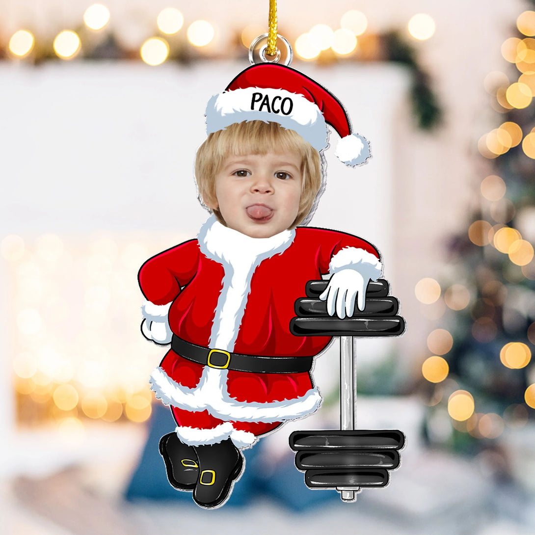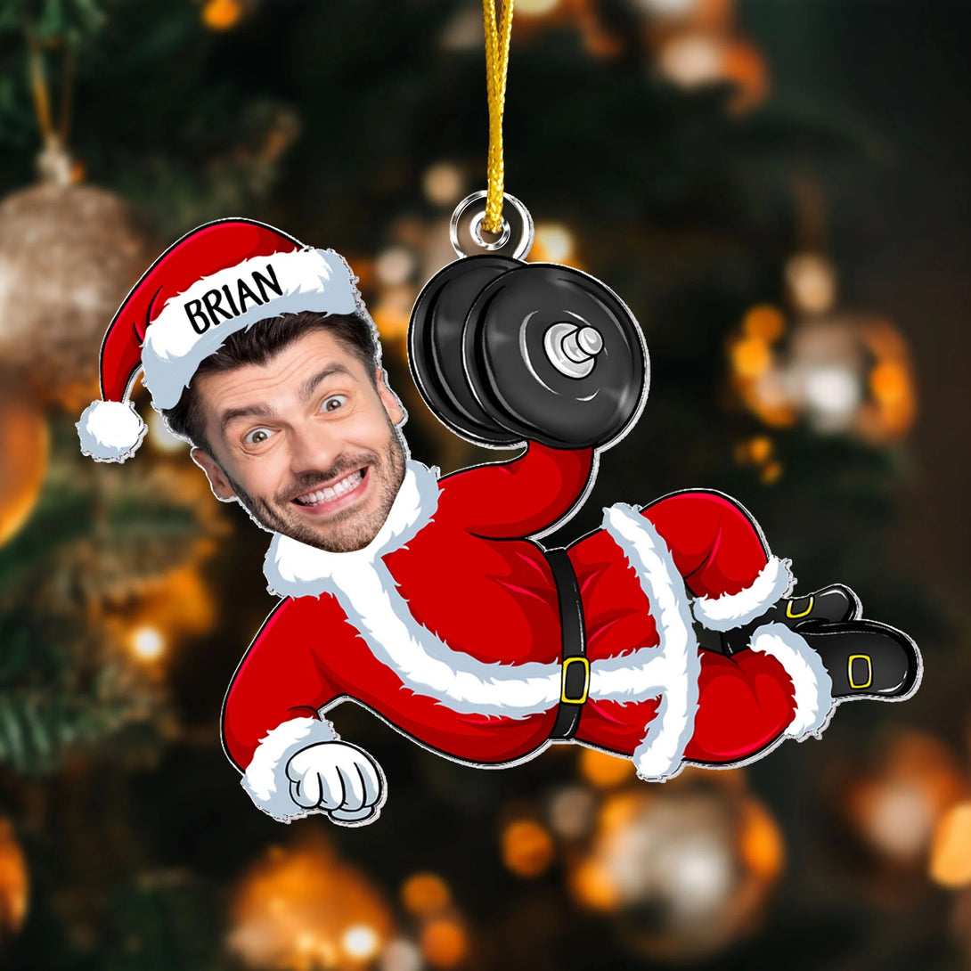 Gym Lovers In Santa Costumes - Personalized Acrylic Photo Ornament