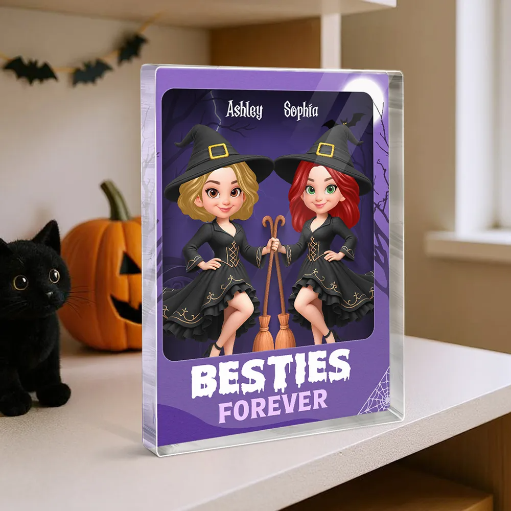 Halloween Witch Besties Sisters In Toy Box 3D Effect Action Figure Personalized Acrylic Block